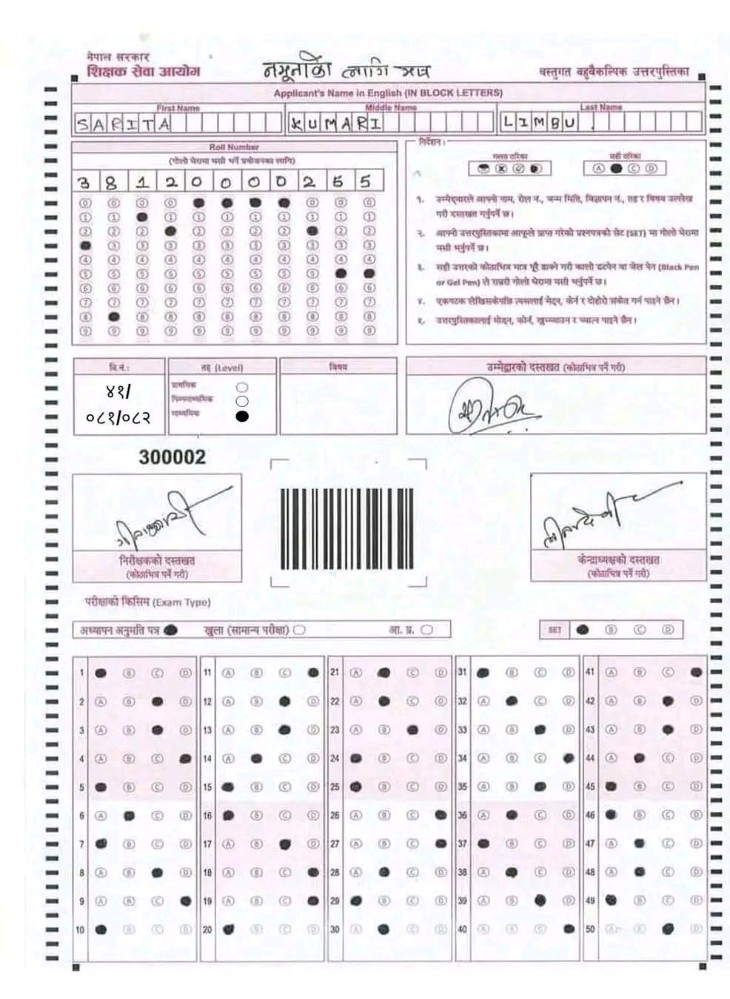 मावि शिक्षक लाईसेन्सको लागि OMR SHEET PDF Download अभ्यास गर्न सक्नुहुन्छ । कसरि भर्ने तरिका पनि हेर्नुहोला ।